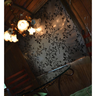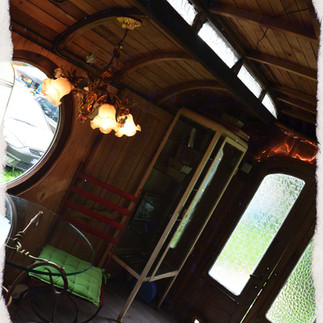 Les touches finales de ce tableau enchanteur sont les couleurs translucides, subtilement incrustées dans la traverse latérale de la roulotte, provenant de la signalétique des chemins de fer. Cette traverse était autrefois une cloison de la chambre, témoignant de l'histoire riche de la Docteur Rubens.