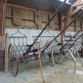 Un râteau à décharge intermittente est très utile pour former les andains et assembler le foin pour le transporter. Le transport et la mise en tas sont similaires à la fenaison manuelle